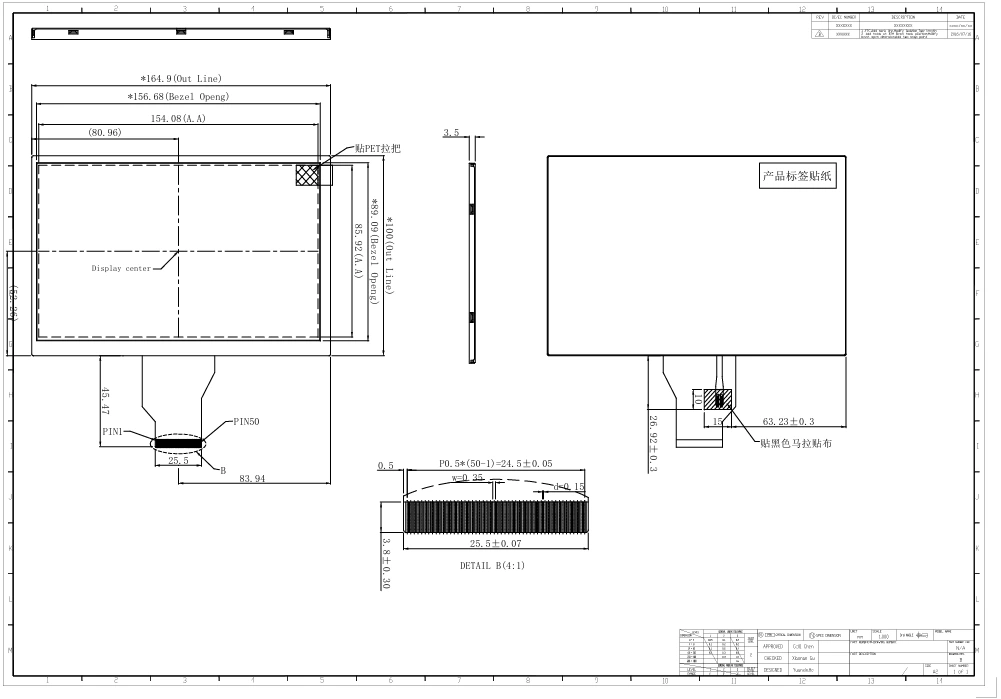 7.0 လက်မအရွယ် Hmi ကျယ်ပြန့်သော TTP TFT IPS TFT LCD မျက်နှာပြင် module