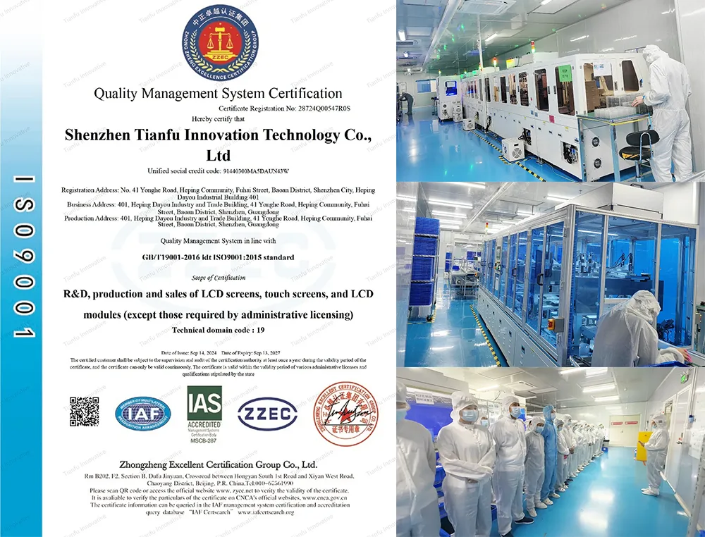 ✅ ပြီးပြည့်စုံသော အသိအမှတ်ပြုလက်မှတ်- ISO9001 အသိအမှတ်ပြု လုပ်ငန်းစဉ်များအောက်တွင် ထုတ်လုပ်ထားသည်။ LCD display module များသည် RoHS နှင့် CE နှင့် ကိုက်ညီသည်။