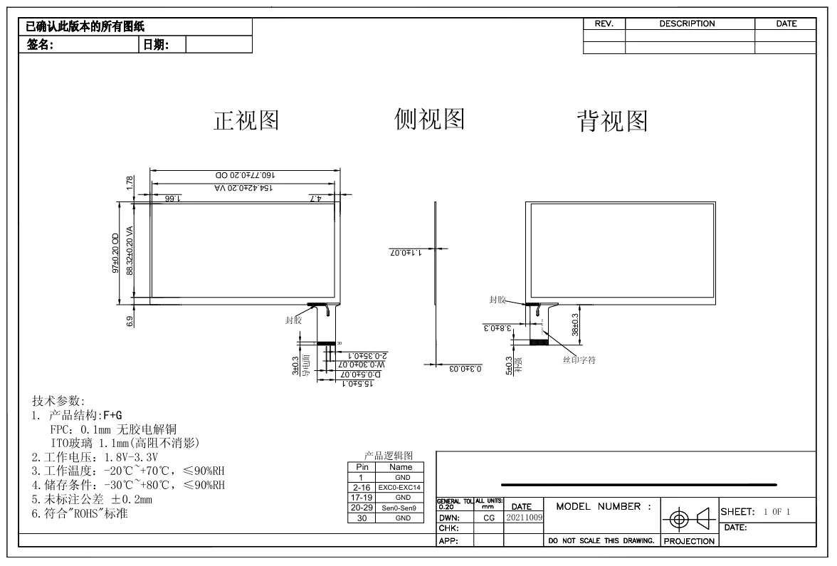 97.00 × 160.77 × 1.10 မီလီမီတာ (Sensor Outline, သည်းခံစိတ် - ± 0.20 မီလီမီတာ)